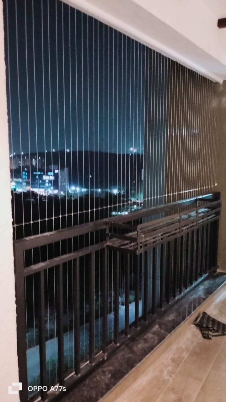 Benefits: Child safety, pigeon control, modern look, rust-resistant, strong SS316 wire, ideal for Ambegaon BK apartments.